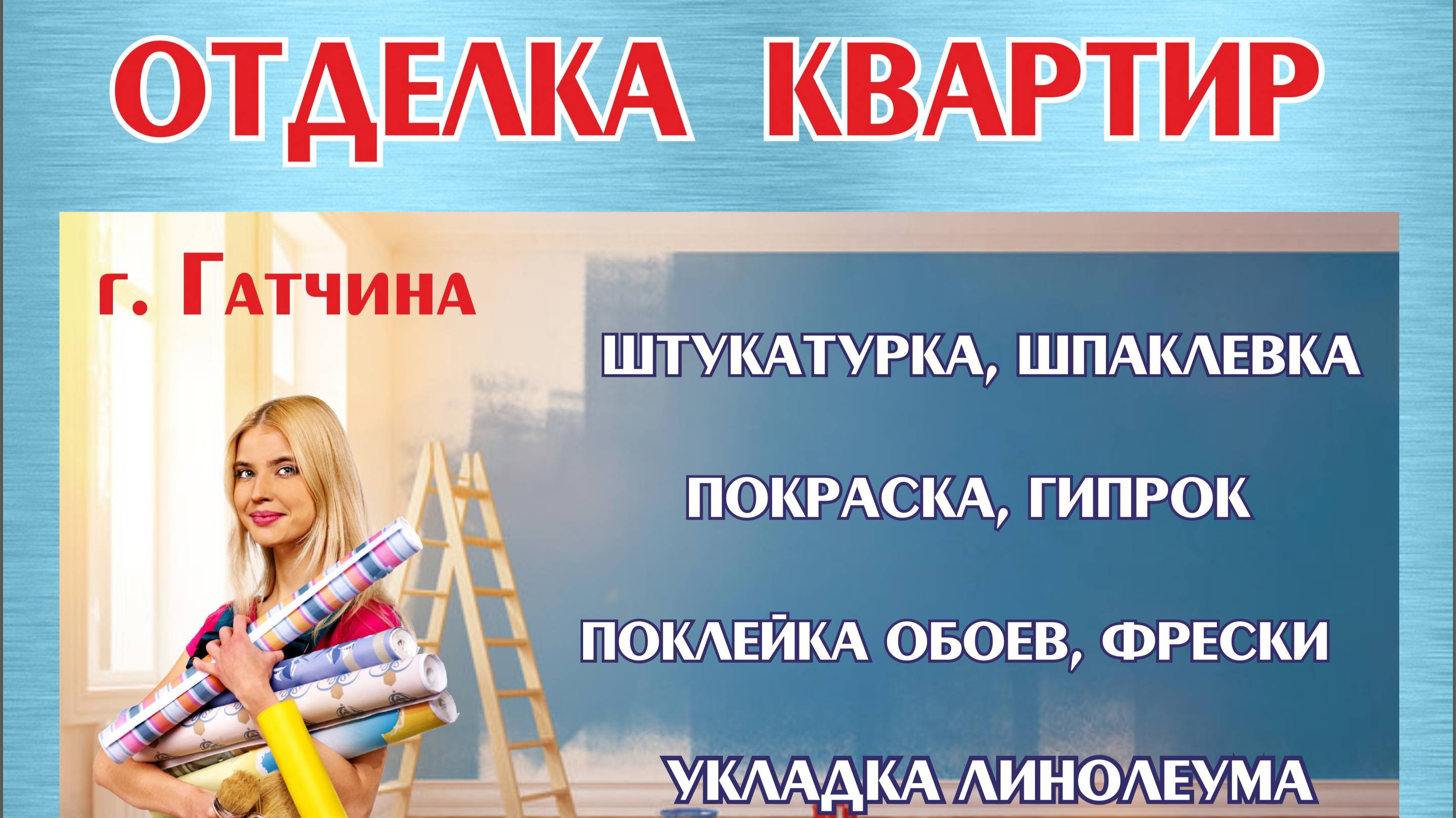 ОТДЕЛКА КВАРТИР И ОФИСОВ в Гатчине: поклейка обоев, штукатурка, гипрочные работы, покраска, линолеум