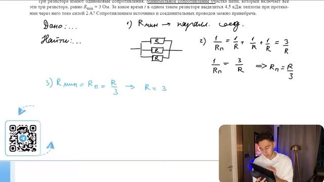 Три резистора имеют одинаковые сопротивления. Минимальное сопротивление участка цепи - №26239