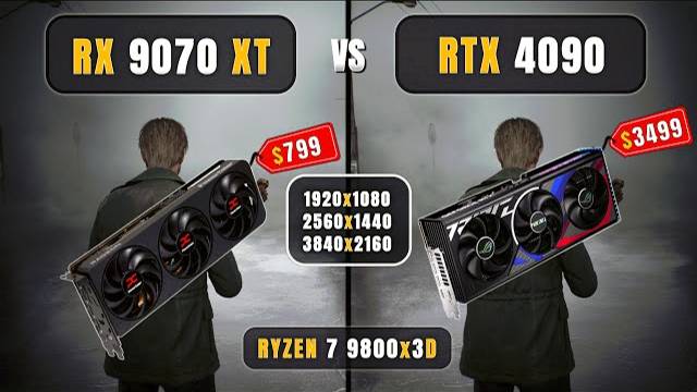 RX 9070 XT vs RTX 4090 | Price Difference 😮 | 1080P, 1440P, 4k | RT + DLSS & FSR 4 | 9800x3D RX 9070 XT vs RTX 5070 Ti: https://youtu.be/xDyu2g2jlxE RTX 5070 Ti vs 4070 Ti SUPER: https://youtu.be/DTo79-Ubi1Y =======(Timestamps)======= 0:00 Hardware Proof... 0:43 Raw Performance (1080p, 1440p, 2160p) 0:46 Horizon Forbidden West - 1080P 1:25 Horizon Forbidden West - 1440P 1:55 Horizon Forbidden West - 4K 2:25 Indiana Jones and TGC - 1080P 3:09 Indiana Jones and TGC - 1440P 2:39 Indiana Jones and TGC - 4K 4:09 Ghost Of Tsushima - 1080P 4:51 Ghost Of Tsushima - 1440P 5:21 Ghost Of Tsushima - 4K 5:51 God Of War Ragnarok - 1080P 6:30 God Of War Ragnarok - 1440P 7:00 God Of War Ragnarok - 4K 7:30 Alan Wake 2 - 1080P 8:08 Alan Wake 2 - 1440P 8:38 Alan Wake 2 - 4K 9:08 Cyberpunk 2077 - 1080P 9:58 Cyberpunk 2077 - 1440P 10:28 Cyberpunk 2077 - 4K 10:58 Hellblade 2 - 1080P 11:36 Hellblade 2 - 1440P 12:06 Hellblade 2 - 4K 12:36 The Last Of Us - 1080P 13:20 The Last Of Us - 1440P 13:50 The Last Of Us - 4K 14:20 Starfield - 1080P 14:58 Starfield - 1440P 15:28 Starfield - 4K 15:58 Silent Hill 2 Remake - 1080P 16:38 Silent Hill 2 Remake - 1440P 17:08 Silent Hill 2 Remake - 4K 17:38 S.T.A.L.K.E.R 2 - 1080P 18:24 S.T.A.L.K.E.R 2 - 1440P 18:54 S.T.A.L.K.E.R 2 - 4K 19:24 RayTracing Comparison 19:27 Alan Wake 2 - 1440p/RT/FSR4/DLSS 20:05 Silent Hill 2 Remake - 1440P/RT/FSR/DLSS 20:44 Silent Hill 2 Remake - 4K/RT/FSR/DLSS 21:23 Cyberpunk 2077 - 1440p/RT/FSR/DLSS 22:05 Cyberpunk 2077 - 4K/RT/FSR/DLSS 22:46 Cyberpunk 2077 - 4K/RT/FSR/DLSS/FG 23:26 Indiana Jones and TGC - 1440P/RT/FSR/DLSS 24:10 Thanks For Watching :) =======(MY PC SPEC)======= ◆ Mobo : Asrock x670E PG Lightning https://amzn.to/49YyKJ9 ◆ CPU : AMD Ryzen 7 9800x3D @ 5.2GHz https://amzn.to/4aTEbeC ◆ Ram : Corsair (2x16GB) 6200MHz DDR5 https://amzn.to/4dhMcLc ◆ GPU 1: Power Cooler Reaper RX 9070 XT 16GB GDDR6 Search: https://amzn.to/4hZwc1v ◆ GPU 2 : Asus Rog Strix RTX 4090 24GB GDDR6x Search: https://amzn.to/3C35EO5 ◆ OS : Windows 10 - Version 22H2 ◆ M.2 SSD : XPG 1TB GAMMIX S70 Blade Gen4 https://amzn.to/4aYv8Z2 ◆ Corsair HX1000i Fully Modular (1000w) https://amzn.to/3OxVxUg ◆ Logitech Gaming Mouse https://amzn.to/3lB3vAi No Additional cost To You. I'll earn commission on qualified purchases. Use these Links for buying and help me to earn. =======( Social Media )======= You can expect FPS Charts on my social media: - Instagram ► https://www.instagram.com/gaming_bench/ Facebook ► https://www.facebook.com/Gaming-Bench-109041743952058/ ===== For Business Inquiries: - GamingBench07477@gmail.com @PowerColorOfficial @asusrog @ASUS @NVIDIAGeForce @AMD @Gaming-AMD ===== Thanks for Watching! ===== Disclaimer: - These video games are a work of fiction. The vehicles, weapons, fighting, blood, etc. may have been adjusted to fit into these video games. All characters appearing in these games are fictitious. Any resemblance to real persons, living or dead, is purely coincidental. There is no relation between these video games with real life.