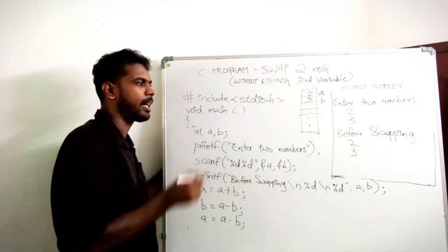 Swap 2 numbers without using 3rd variable Malayalam Video Tutorial | #4 | C Program explanation