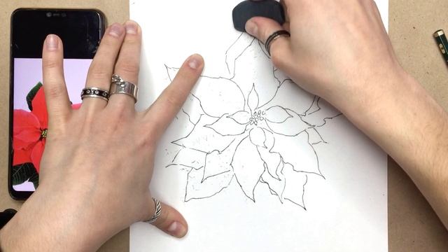Рисуем акварельный скетч пуансеттии с фотографии
