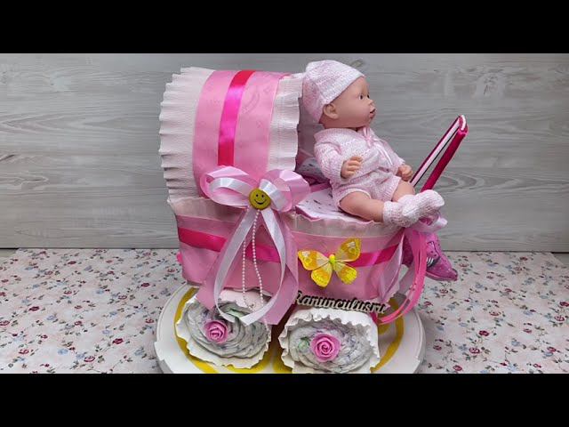 Коляска из подгузников для девочки с музыкальной куклой Выбрать и купить коляску из памперсов можно перейдя по ссылке https://ranunculus.ru/podarki-na-rozhdenie-rebenka/torty-iz-pampersov/kolyaski-iz-pampersov/ Сайт https://ranunculus.ru