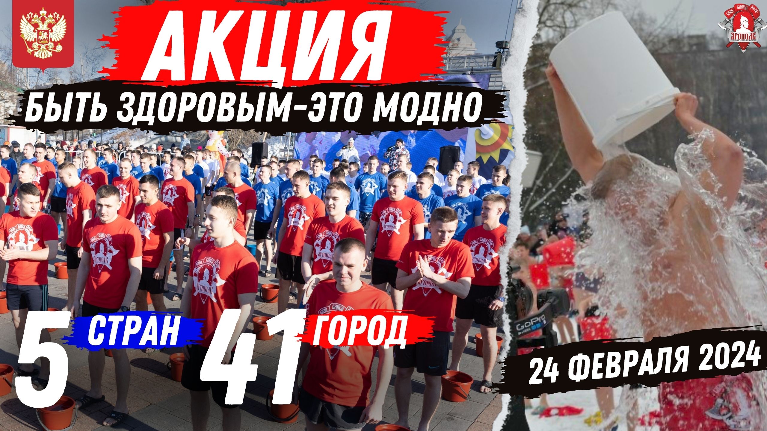 Дорогие друзья! 24 февраля 2024 года в 41 городе из 5 стран состоится Международная спортивно-патриотическая акция «Быть здоровым – это модно 12!», где город Красногорск будет главной площадкой данного события. Мероприятие организовывает спортивно-патриотический клуб "ЯРОПОЛК". В акции примут участие такие города Тирасполь, Улан-Удэ, Южно-Сахалинск, Волгодонск, Геленджик, Новороссийск, Хабаровск, Казань, Керчь, Астрахань, Курган, Анапа, Калининград, Севастополь, Евпатория, Владивосток, Тюмень, Чита, Свирск, Пермь, Волгоград, Воронеж, Нижний Новгород, Красноярск, Кемерово, Кызыл, Калуга и многие другие. С каждым регионом будет организован телемост, поэтому все зрители и участники могут наблюдать друг за другом. Мероприятие будет включать ряд «инсталляций», направленных на пропаганду здорового образа жизни и обширную программу для участников и зрителей. Кульминацией данного события станет массовое обливание холодной водой, в котором может принять участие любой желающий от 5-ти лет и старше. Также в Красногорске пройдёт зимний турнир по кроссфиту, где победители получат ценные подарки и денежные призы. На площади Красногорска будут работать интерактивные площадки, а именно: шахматная зона, зона довоенной подготовки, соревнования по подтягиванию и отжиманиях на брусьях (лучший получит 10.000 руб. в каждой из 2 силовых упражнений), соревнования на разборку и сборку автомата (лучший получит 10.000 рублей), соревнования на самый сильный удар рукой (лучший получит 10.000 рублей), будет работать бесплатная полевая кухня и многое другое. Надеемся, что отличное настроение, «боевой задор» и естественно хорошая организация акции сможет Вас впечатлить и пробудить желание «изменяться к лучшему». ❗ Для участия в обливании и кроссфите ОБЯЗАТЕЛЬНО пройдите регистрацию на сайте https://bit-zdorovim.ru/. , где в разделе РЕГИСТРАЦИЯ УЧАСТНИКА выбирайте свой город. На почту Вам придёт подробное письмо с инструкцией. Дополнительная информация по телефону 8-495-562-42-26 Запись будет проходить до 22 февраля, но может закончиться и раньше из-за ограничения мест в обливании и кроссфите. 24 февраля 2024 года 5.000 человек из более чем 41 города от Сахалина до Калининграда, а также из Преднистровья, Южной Осетии, Абхазии и стран ближнего Востока обольются холодной водой одновременно в формате телемоста. Не пропустите это знаковое событие. Приглашайте друзей и близких. До встречи. ? ЖДЁМ ВАС! БЫТЬ ЗДОРОВЫМ-ЭТО МОДНО! _________ СПК "Ярополк" в социальных сетях: 1. Сайт клуба "ЯРОПОЛК" http://yaropolk-kr.ru/ 2. Клуб в яндекс ДЗЕН https://zen.yandex.ru/id/622c6c101730a75b14e344f1 3. Канал клуба в РУТУБЕ https://rutube.ru/channel/24364793/ 4. Основной ЮТУБ канал клуба https://www.youtube.com/channel/UC8_-UiULs-bVcRcwRq_IuMA 5. Резервный ЮТУБ канал (бои спортсменов клуба и т.д.- проф. и любительская видео съёмка) https://www.youtube.com/channel/UCHyOJ6PwuaSyKnQhoOCrH9A 6. Обучение по единоборствам (Ютуб канал клуба) https://www.youtube.com/channel/UC_uOxXHnxRU7vKDYCjlEosA 7. ЮТУБ канал музыкальной группы ЯРОПОЛК https://www.youtube.com/channel/UC7z6Z_Rblxy7Snt3Kwx9PUQ 8. В контакте: https://vk.com/yaropolk_krasnogorsk 9. В одноклассниках: https://ok.ru/group/52505508708529 10. В телеграмме t.me/YaropolkClub _________ #ЯрополкОбливание #бытьЗдоровымЭтоМодно12 #бытьЗдоровымЭтоМодно #зож #ярополк #КлубЯрополк #деньЗащитникаОтечества2024 #массовоеОбливание #спортивныйКрасногорск