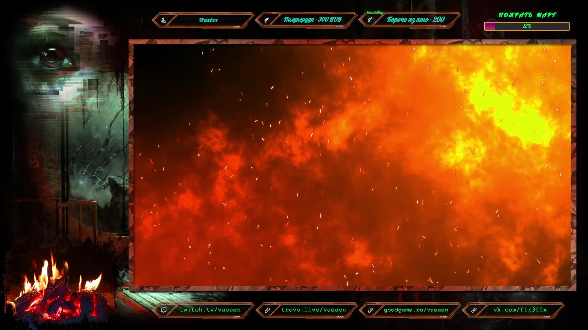Если хотите поддержать меня как стримера - нажмите по данной ссылке https://www.donationalerts.com/r/f1r3f0x Donate for USD, EU all world - https://new.donatepay.ru/@vaeaen Во время стрима ваше сообщение появится на экране, и будет сопровождаться голосовым диктором. Поддержка на прямую: Сбер: 2202 2010 0629 1039 Тинькофф: 2200 7008 4677 0625 Основные каналы: Twitch: https://www.twitch.tv/vaeaen GoodGame: https://goodgame.ru/channel/Vaeaen/ Trovo: https://trovo.live/Vaeaen Дополнительные: Boosty: https://boosty.to/vaeaen VKplay: https://vkplay.live/vaeaen Wasd: https://nuum.ru/channel/vaeaen YouTube: https://www.youtube.com/channel/UCsl3CyRcImUYtWiCgEdvmjQ