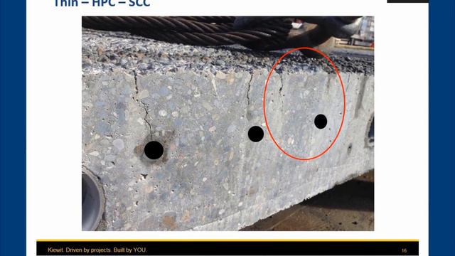 Presented by Oscar R. Antommattei, Kiewit Engineering Group The topic of cracking has always been of great interest to the concrete industry. Concrete is known to be prone to cracking; thus, implementation of proper selection of design, reasonable materials properties and construction best practices are expected to reduce, mitigate and control risk of cracking (in some cases, eliminate cracking). The phenomenon of plastic settlement cracking has been known for many years. Plastic settlement is typically referred to water bleeding in plastic concrete that allows solids to settle as bleed water rises. Cracking occurs in the plastic concrete over an embedded object that is retraining the plastic concrete, thus a crack is expected to form over this embedded object. Research studies have attempted to describe this phenomenon and some cracking patterns have been associated to plastic settlement by either simplification of models or deducing from limited observations in isolated conditions. In general, the main goal is to reduce cracking without significantly affecting the design, construction and materials properties; however, limited reporting of field practitioners have not helped resolving discrepancies in the understanding of plastic settlement cracking in the field. This presentation provides a field practitioner’s perspective about plastic settlement cracking and examples from real projects.