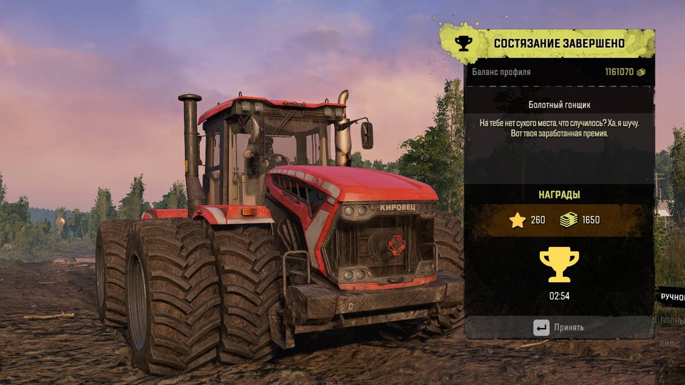 SnowRunner Состязание Болотный гонщик за 2:54 на "Кировец" К-7М