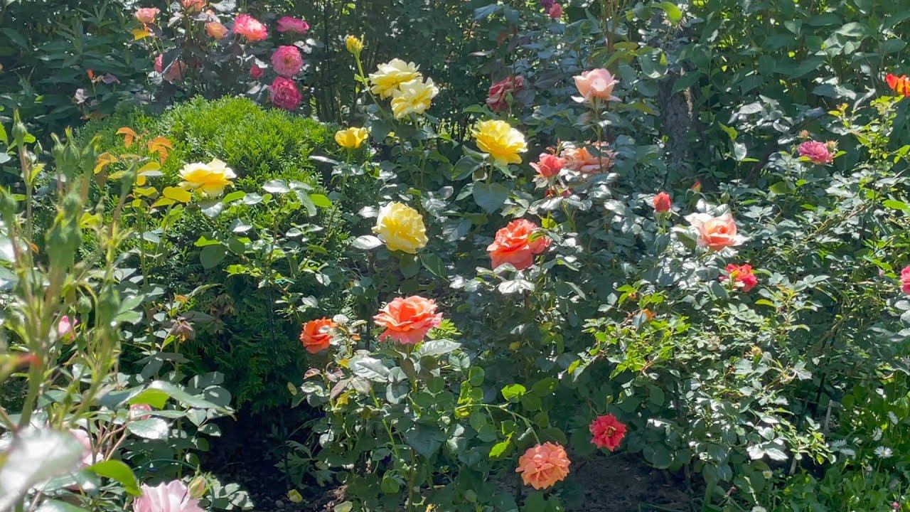 Показано цветение пиретрума 'Robinson Red', наперстянки, дейции, а также роз: Marie Antoinette Marseille en Fleurs Odyssey (Одиссей) Omi Oswald Penelope (пенелОп) Grand-Duc Jean Checkmate (Diclanky) Gravin Michel d'Ursel Edouard Vermeulen Fleur de Sardaigne (Belle de Sardaigne) (Флёр дё СардЭнь) Princessa Charlene de Monako Blue for You Lavender Pinocchio Golden Zest (100 Idees Jardin) Blue Boy Purple Splash Bonica (бОника) Handel Дата съёмки: 29 июня 2023 Место съёмки: Ленинградская область, Россия Всем добра, мира и красоты