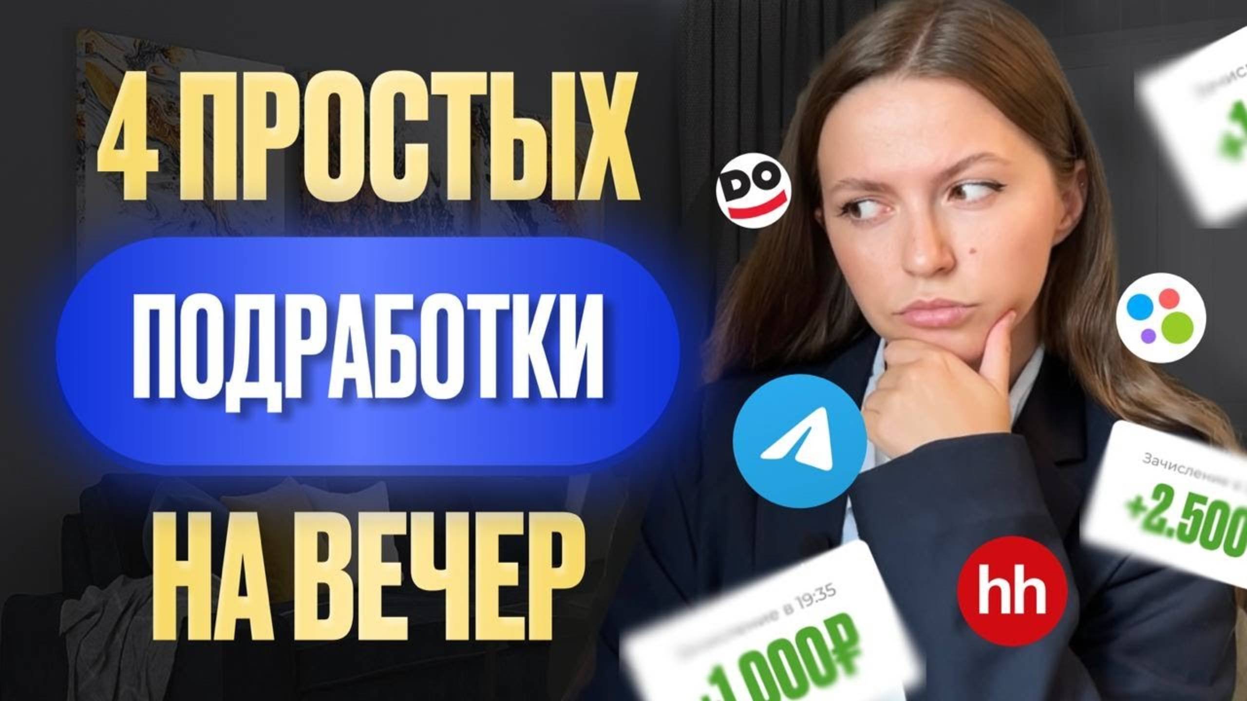 🚀Регистрация на бесплатный 3-х дневный курс «Фриланс-старт»👇 https://terentev-school.ru/freelance_start?utm_source=RUTUBE&utm_medium=4podrabotki Всего за 3 дня вы: ✔️освоите 2 востребованных навыка (создание сайтов и чат-ботов) ✔️научитесь продавать их заказчикам ✔️заработаете первые 5-10к руб. Скачивайте чек-лист «Топ-10 самых востребованных профессий на удаленке» в нашем Телеграм-канале для фрилансеров👇 https://t.me/+GRFuzunBBywxZmFi _______ Инстаграм — запрещенная в России организация Личный аккаун https://instagram.com/melnikova_blog Аккаунт школы https://instagram.com/terentevy_school _______ В этом видео разберем 4 самые легкие подработки на вечер, которые подойдут для школьников, студентов, сотрудников найма и мамочкам в декрете. Эти подработки не требуют длительного обучения и подходят каждому, кто хочет зарабатывать в интернете и стать фрилансером. Обсудим, куда может устроиться каждый и начать зарабатывать первые деньги без опыта. Разберем работу из дома. Полезно посмотреть всем, кто хочет заработать в интернете. Как заработать в интернете? Если вы хотите начать самостоятельно зарабатывать деньги, но у вас нет опыта или образования — это видео может быть полезным. Удачи на фрилансе! Тайм-коды: 0:00 Вступление 0:38 Первый способ подработки 1:19 Второй способ подработки 2:24 Третий способ подработки 3:26 Четвертый способ подработки Посмотрите также эти видео: https://www.youtube.com/watch?v=sW-8z_bhVpE 5 сайтов для заработка на фрилансе 2024 https://youtu.be/Tf6ypuWSxtc?si=OF_zcg0I2SfYipxj Как привлечь клиентов на фрилансе 2024 https://www.youtube.com/watch?v=cJpPmjB15EU&t=78s Как освоить онлайн профессию и стать Администратором онлайн-школ #подработка #фриланс #обучениефрилансу #администраторонлайншкол #техспецонлайншкол #работавинтернете #деньгивинтернете #онлайнкурс #удаленнаяработа #работавинтернете #подработкадлямам #подработкадома #какмонтировать #какмонтироватьнателефоне #inshot #иншот #capcut #тильда #сайтнатильда #таплинк #сайтнатаплинке #каксделатьтаплинк #каксделатьtaplink #копирайтинг #копирайтингснуля #какписатьпост #какнаписатьпост #чатбот #чатботснуля #каксделатьботавтелеграмме #каксоздатьботавtelegram #telegrambot #телеграмбот #телеграмботс нуля2024 #подработканавечер2024 #подработкана2часа #подработкавечером