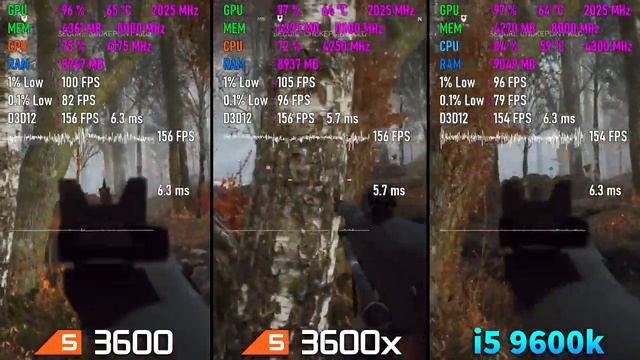 Ryzen 5 3600x vs Ryzen 5 3600 vs i5 9600k Test in 8 Games 720p