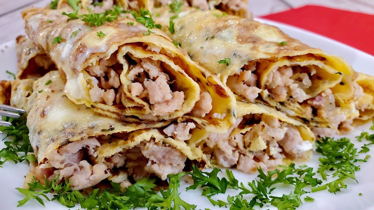 ЯИЧНЫЕ БЛИНЧИКИ С МЯСНОЙ НАЧИНКОЙ - простая ароматная закуска