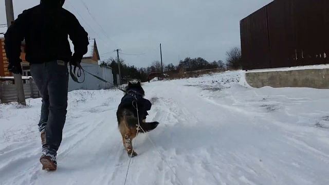 Овчарка 7мес. тянет санки, когда воспитываешь овчарку как хаски))