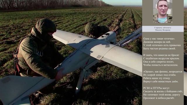 #ПОЭЗИЯСВО Старший лейтенант Максим Ветерков — начальник расчета беспилотника «Орлан-10». Вместе со своими бойцами он удачно эвакуировал подбитую «птичку» из под обстрела противника. На такой отчаянный шаг нужно мужество. В данной рубрике поэзия СВО звучат стихи начальника Военно-художественной студии писателей Центрального Дома Российской Армии имени М.В.Фрунзе, заслуженного работника культуры Российской Федерации Владимира Силкина в исполнении заслуженной артистки Российской Федерации Натальи Пярн.