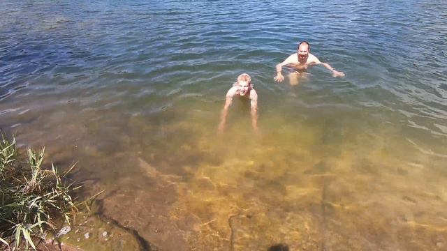 Серега пытается выйти из воды