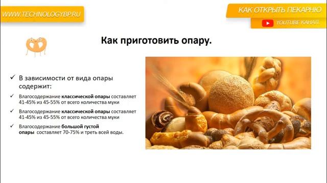 Консультации: https://t.me/denismashkovv или +7 999 962 28 06 ✅Открыть предприятие: https://technologybp.ru Купить ткань для расстойки теста в розницу: https://vk.cc/csMIiV ТГ Канал КАК ОТКРЫТЬ ПЕКАРНЮ: https://t.me/open_bakery ОПАРА. Как открыть пекарню. Денис Машков. 00:00 Опара • Видео обсуждает опару, полуфабрикат для приготовления хлебобулочных изделий. • Опара состоит из муки, воды или молока, дрожжей и, иногда, соли, сахара и жира. • Консистенция опары жиже, чем у теста. • Опара бродит от 3 до 4,5 часов при температуре от 28 до 32 градусов Цельсия. 01:52 Виды опары • Опара может быть классической, густой или жидкой, в зависимости от содержания жидкости и муки. • Классическая опара содержит 41-45% влаги и 45-50% муки, густая опара - 41-45% влаги и 60-70% муки, жидкая опара - 68-72% влаги и 25-35% муки. • Парный способ тестоведения популярен как для малых, так и для больших хлебопекарных предприятий. • Опара придает изделиям дополнительный вкус, цвет и запах, а также помогает продлить срок годности.