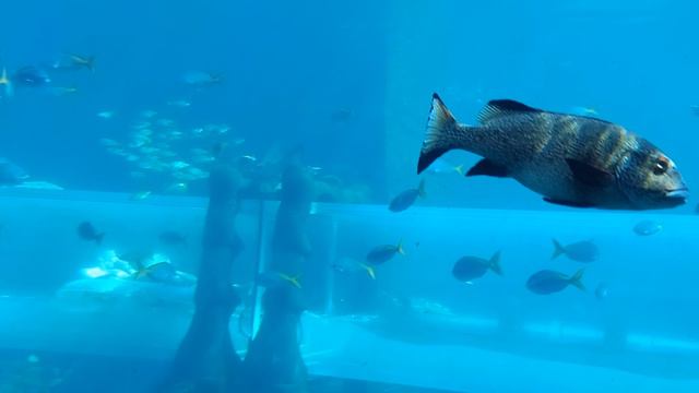Труба с акулами!Плывёшь в аквариуме с рыбами и скатами!