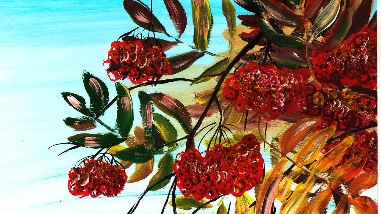 Как нарисовать рябиновую ветку. Рисуем осенний пейзаж. Рисуем рябиновую гроздь легко.