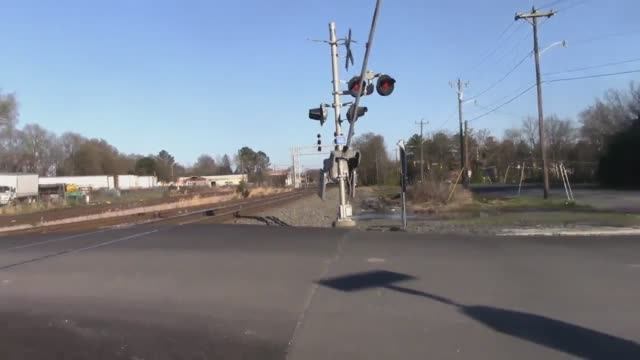 Красивые тепловозы тянут двухэтажный скоростной поезд в Каролине США. Скоростной поезд