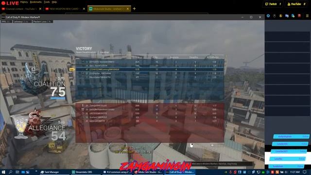 #ZAMGamingIN #Call Of Duty : Modern Warfare Call Of Duty : Modern Warfare new weapon new camo + battle pass push. ------------- Follow me on Social Media ------------- Youtube - https://youtube.com/c/ZAMGamingIN Twitch - https://www.twitch.tv/zamgamingin Facebook - https://www.facebook.com/zamgamingin0 Discord - https://discord.gg/tHT3KFskpR Don't forget to Like ,Share and Subscribe to my channels. ------------- My PC Specs ------------- Monitor - LG 20" LED 20EN33 Processor - AMD Ryzen 3 3100 3.59Ghz 4 Core Motherboard - Gigabyte Technology Co., Ltd. A320M-S2H Ram - 8GB x 2 DDR4 SDRAM 1200.5 MHz (DDR4-2400 / PC4-19200) CD-Rom - LG HL-DT-ST DVDRAM GH22NS40 SCSI CdRom Device Mouse - Dragonwar ELE - G12 Keyboard - Redgear MK881 Invador GPU - Nvidia Geforce Zotac 1050 Ti 4Gb DDR4 HDD - ST2000DL003 (2000.40 GB) ST3500320AS (500.11 GB) ST4000VX007 (4000.79 GB) WDC WD5000AADS (500.11 GB) WDC WD5000AAKX (500.11 GB) Printer - HP LaserJet P1007 UPS - APC Back-Ups Pro 1500 Headset - Redgear 7.1 Hell Fury Pro Gaming Headset Speakers - Creative 4100 5.1 Surround Sound Wi-Fi Router - Tp-Link Archer C5 AC 1200 Cabinet - Cooler Master Elite 400 Black ------------- Stream Language ------------- English Hindi Hinglish ------------- My Stream Schedule ------------- Morning - 9:00 AM to 12:30 PM Afternoon - 2:00 PM to 4:00 PM Evening - 5:00 PM to 6:30 PM & 7:00 PM to 8:00 PM Night - 9:00 PM to 12:00 AM