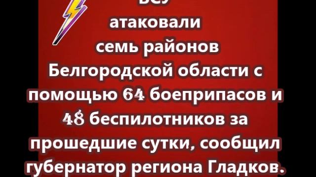 ВСУ атаковали семь районов Белгородской области с помощью 64 боеприпасов и 48 беспилотников за проше