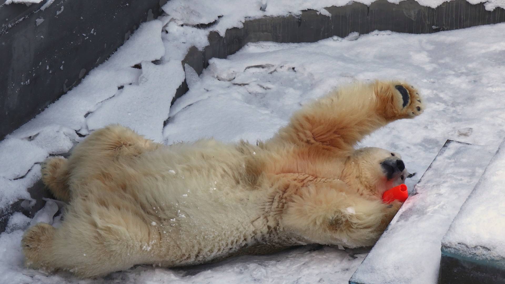 Белый медведь Кай просыпается...