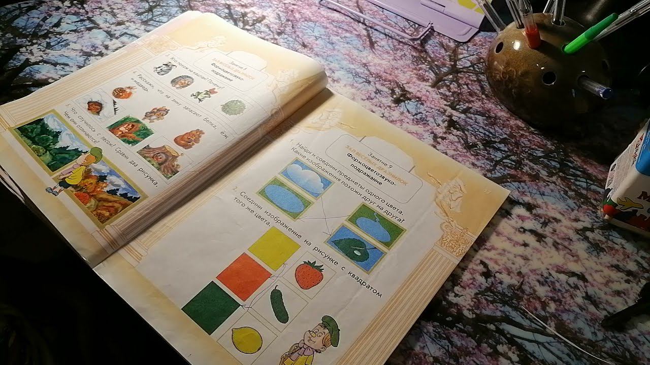 Занимаемся по пособию для дошкольников О. А. Куревина, Г. Е. Селезнева. Путешествие в прекрасное. 09 занятие. Зал веселых дразнилок. Формоцветозвукоподражание. 1 часть.