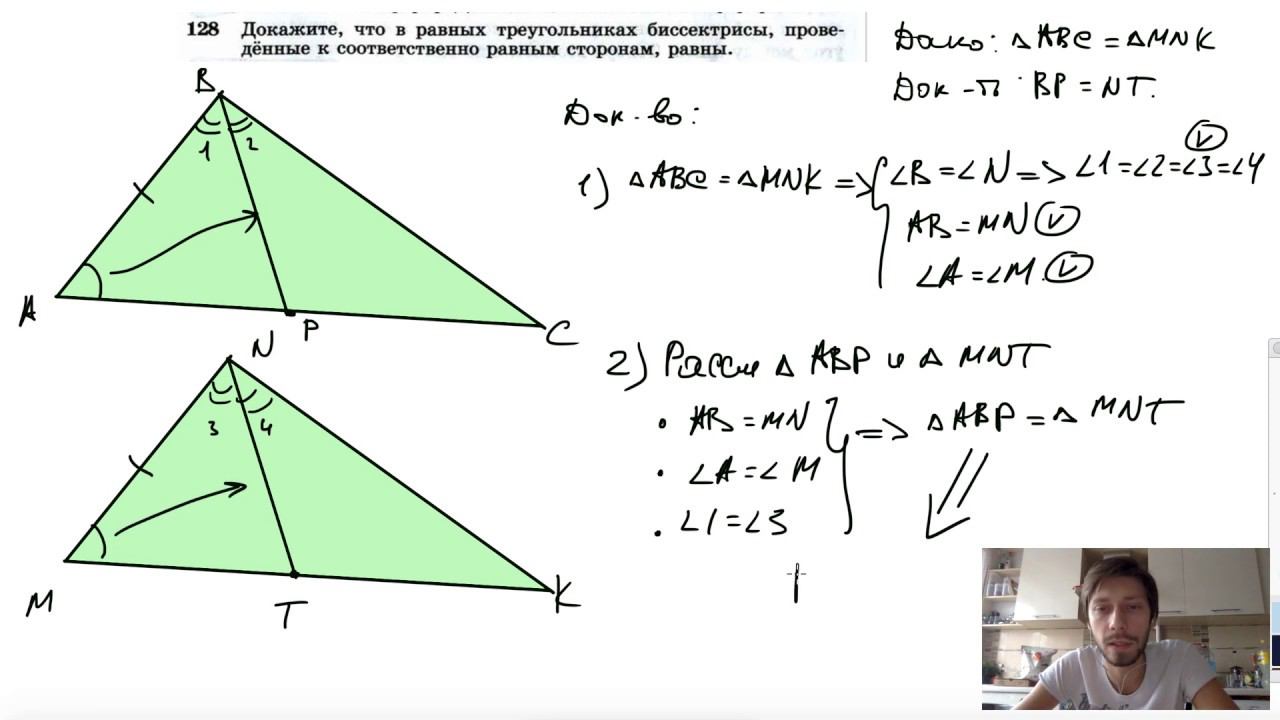 №128. Докажите, что в равных треугольниках биссектрисы, проведенные к соответственно равным сторонам, равны. Поддержать канал рублём - 5469400944002125 (Сбербанк) Мой второй канал для подготовки к ЕГЭ и ОГЭ - https://www.youtube.com/ЕвгенийСумин Инстаграм - https://www.instagram.com/EGE_OGE.math Личный инстаграм - https://www.instagram.com/ee_sumin VK - https://vk.com/evgeniysumin FB - https://www.facebook.com/EvgeniySumin