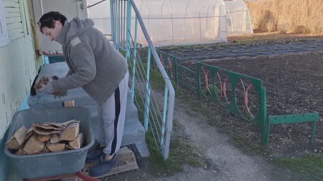 Еще один день в деревне.Убираюсь на участке.Топлю печку.Жарю рыбу.