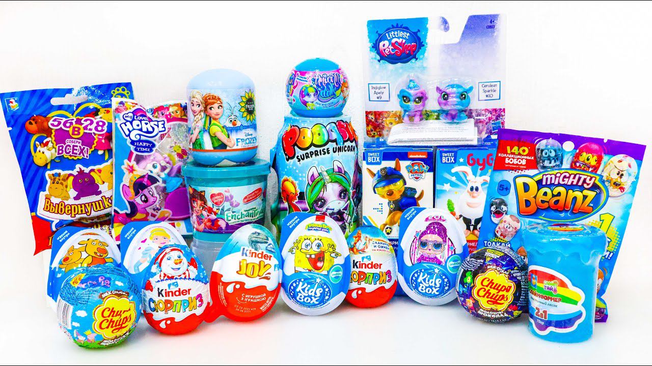 Собрала 20 ГОЛУБЫХ сюрпризов: ХОЛОДНОЕ СЕРДЦЕ, ЛПС, ЛОЛ, Слаймы, Губка Боб и другие