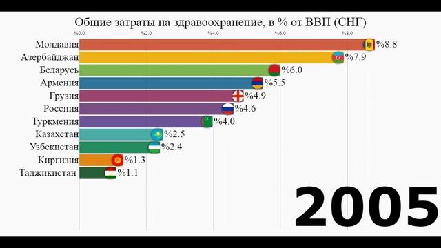 Общие затраты на здравоохранение, в % от ВВП. Страны СНГ.