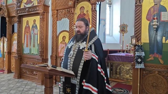 30 апреля 2024 г., в канун Великой Среды, епископ Борисовский и Марьиногорский Амвросий молился за вечерним уставным богослужением в кафедральном соборе Воскресения Христова г. Борисова.