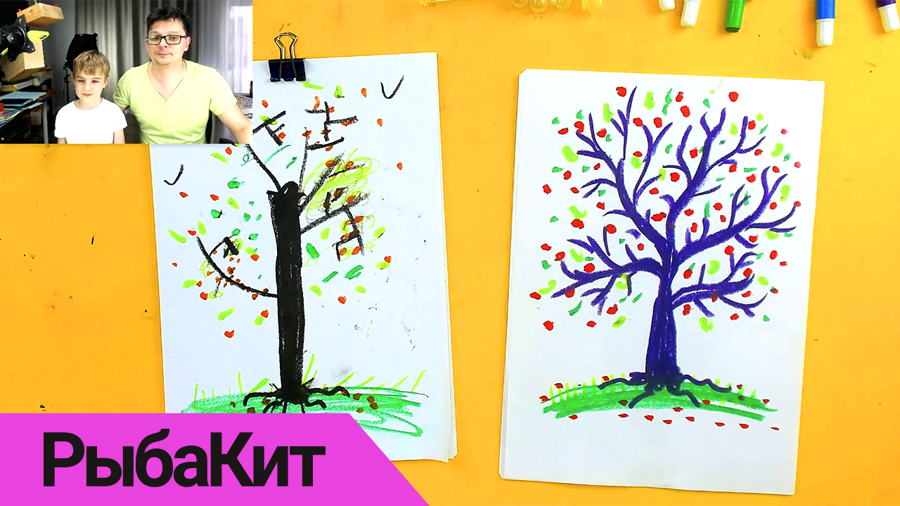 Как нарисовать дерево с ребенком - уроки рисования