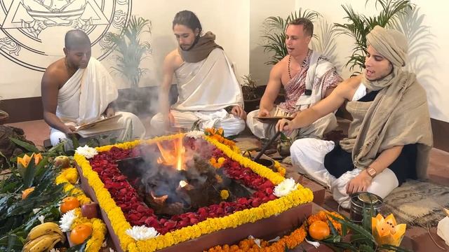 Огненные ведические ягьи в Шридхам Майапуре, Западная Бенгалия, Индия.