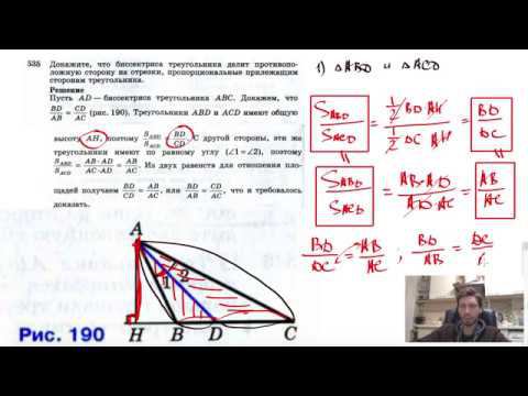 №535. Докажите, что биссектриса треугольника делит противоположную сторону на отрезки, пропорциональные прилежащим сторонам треугольника. Поддержать канал рублём - 5469400944002125 (Сбербанк) Мой второй канал для подготовки к ЕГЭ и ОГЭ - https://www.youtube.com/ЕвгенийСумин Инстаграм - https://www.instagram.com/EGE_OGE.math Личный инстаграм - https://www.instagram.com/ee_sumin VK - https://vk.com/evgeniysumin FB - https://www.facebook.com/EvgeniySumin