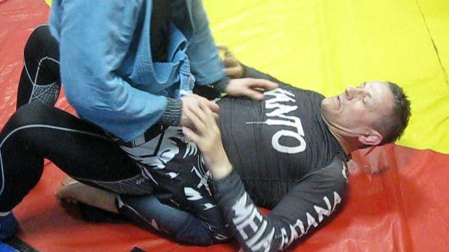 2017 год. Махом напряженных ног разбиваем контроль ногами со стороны соперника для ухода.