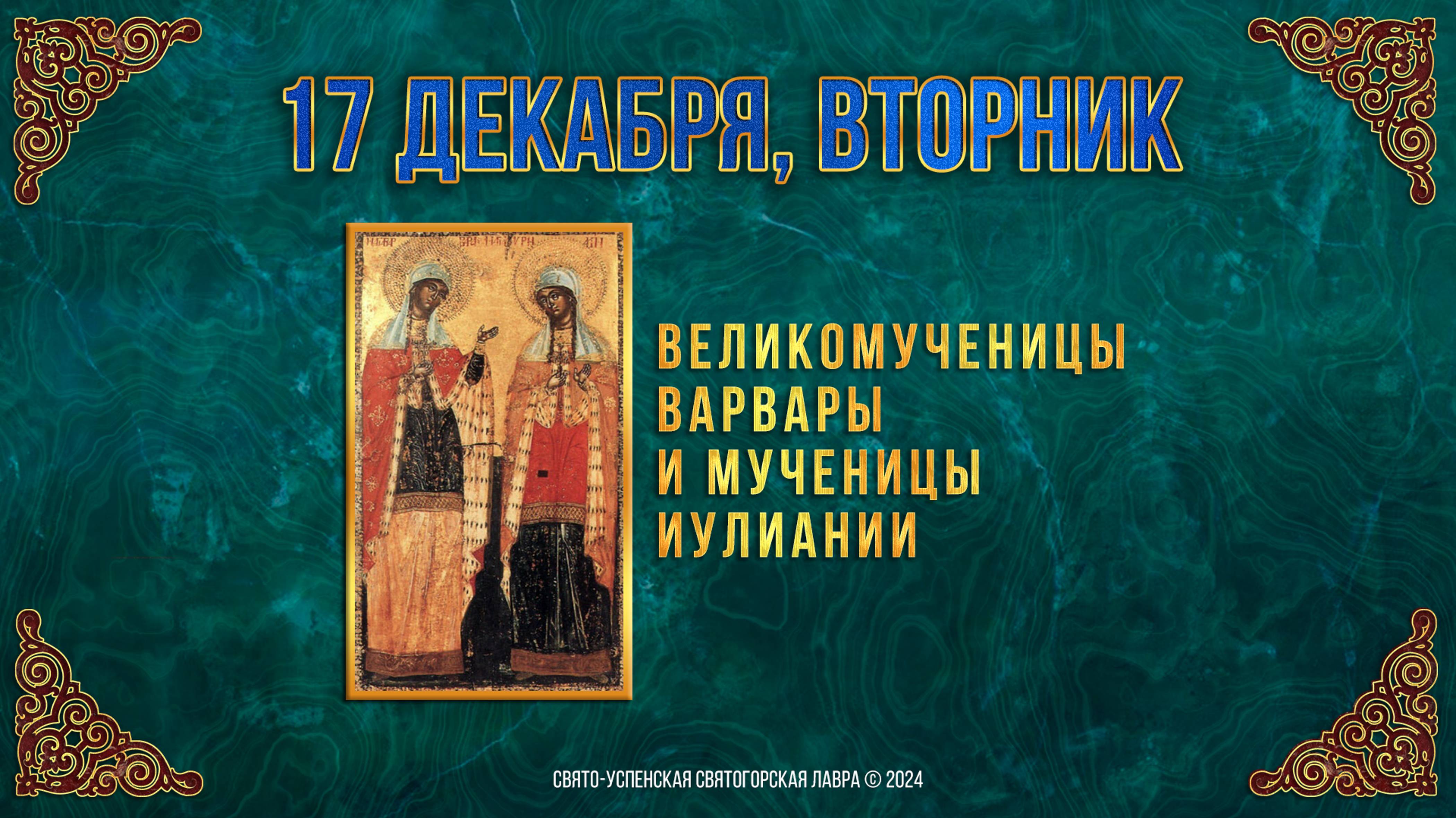 Великомученицы Варвары и мученицы Иулиании. 17 декабря 2024 г. Православный мультимедийный календарь