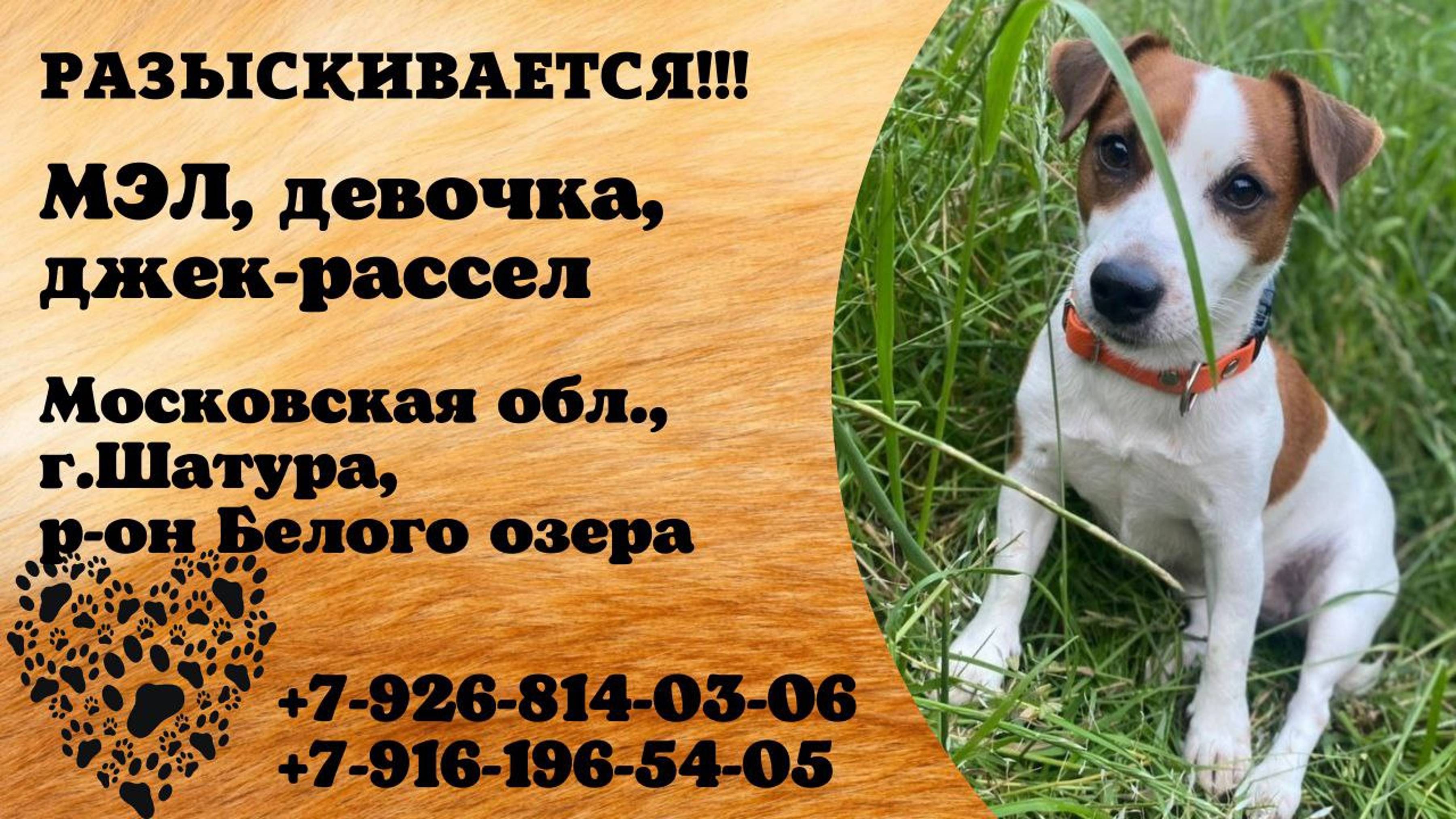 Московская Шатура Пропала собака Добрый вечер! У нас 02.08.2025 пропала собака джек рассел терьер зовут Мэл, возраст чуть больше 4-х лет. Мы были на пляже возле Белого озера после деревни Бордуки. Обычно собака сидит возле вещей пока мы в воде, но сегодня был гром вдалеке и она видимо испугалась. Люди на пляже видели как мужчина и женщина нашу собаку забрали на передержку поскольку подумали что она брошенная и должны написать в группу Типичная Шатура, но пока никакой информации нет. Меня зовут Мария+79161965405. +7 926 814 03 06, помогите пожалуйста! Буду рада любой информации! Инфо: https://vk.com/wall-198815410_206041 #пропала_собака#московская#шатура#джек_рассел