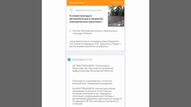 Город Красногорск остановка общественного транспорта улица Народного ополчения ( по маршруту 833) рядом ТЦ Солнечный рай. Ответ с сайта Добродел. На данный момент нет возможности проверить достоверность данной информации, но думаю расписание установили ( ведь даже три фото приложили). Опять же только по МОЕМУ обращению работы были выполнены. #2023 #россия #подмосковье #город #дом #красногорск #ответ #отчет #остановка #автобус #пешком #опасно