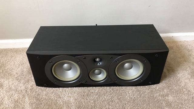 Infinity Beta model C360 Home Theater Center Channel Surround Speaker Specs: video-shielded frequency response 45-20,000 Hz (±3dB) 8-ohm impedance sensitivity 91 dB handles up to 200 watts 3-way design 1" CMMD tweeter 4" CMMD midrange driver dual 6-1/2" CMMD woofers 5-way binding posts 25-5/8"W x 8-9/16"H x 12-13/16"D