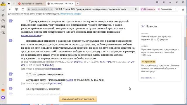 Статья 179 УК РФ Принуждение к совершению сделки или к отказу от ее совершения