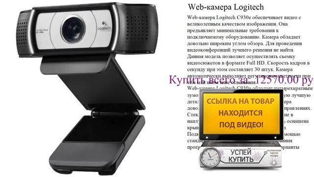 Посмотреть товар: http://electronics.urlclub.ru/WEB_camera/1279679.php Web-камера Logitech C930e обеспечивает видео с великолепным качеством изображения. Она предъявляет минимальные требования к подключаемому оборудованию. Камера обладает довольно широким углом обзора. Для проведения видеоконференций лучшего решения не найти. Данная модель позволяет осуществлять съемку видеосюжетов в формате Full HD. Скорость кадров в секунду при этом составляет 30 штук. Камера автоматически выполняет регулировку цветности при том или ином типе освещения. Web-камера Logitech C930e обладает четырехкратным зумом. Эта особенность обеспечивает самую лучшую детализацию звонков и видеозаписей. Камера довольно легко поворачивается во всех направлениях. Стеклянный объектив передает изображение в наилучшем качестве. Также данная модель оснащена крышкой затвора для конфиденциальности. Подключается к любому компьютеру с помощью стандартного USB разъема без использования программного обеспечения. Различные варианты крепления создают дополнительные удобства при установке.