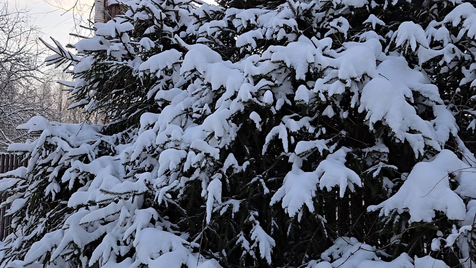 Еловые ветви, великолепие Зимы и яркий мотылёк