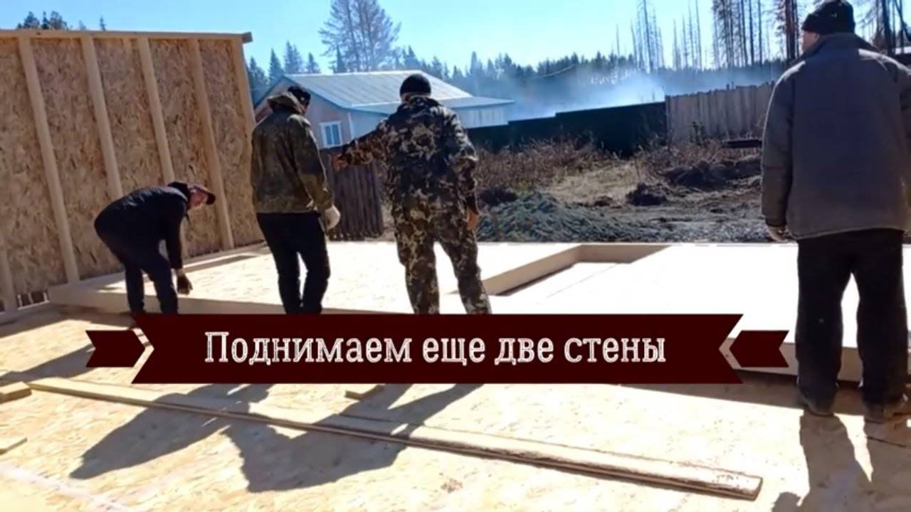 Поднимае еще две наружные стены нашего каркасного дома
