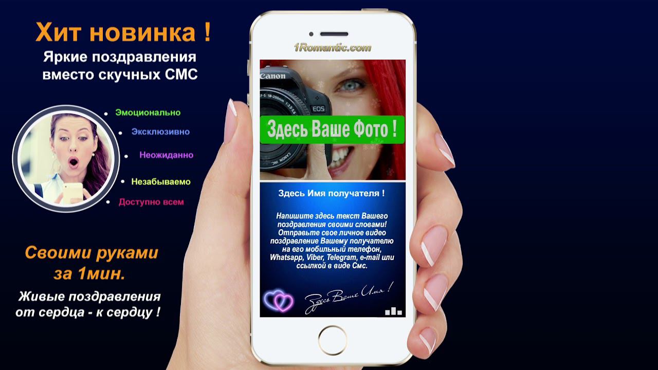 ЗАПОЛНИТЬ ЭТУ ОТКРЫТКУ СЕЙЧАС: https://1romantic.com/musicalnye-pozdravleniya/zimniy-potseluy/ Дорогие друзья! Вам остаётся только, написать нужный вам текст и загрузить свою фотографию. 1Romantic.com Является первым и единственным в мире сервисом интерактивных видео поздравлений. Мы используем собственную уникальную технологию, добавляя ежедневно самые новые и последние разработки программирования. У нас Вы можете найти поздравления на любой вкус, только высокого качества и разрешения. Согласитесь, всегда приятней, отправить поздравления от себя лично, чем пересылать чужие, с уже заготовленным стандартным и быстро мерцающим текстом, как рекламный баннер, пересылаемый друг-другу от тысячи к тысячам где нет Ваших Имён. Задумайтесь ! Это выглядит слишком наивно и как минимум глупо, особенно для людей которые умеют писать и читать (на мою розочку сверкалку или стикер и отвали). Теперь всё будет иначе ! Вы можете сами передать своё настроение, тем людям, которым Вы будете адресовать своё поздравление. Теперь Вы сами, творец, художник и поэт своих чувств, наполняя видео открытку своими словами, излучая только самое доброе, искреннее из своих тёплых сердец. Загрузить свою любимую фотографию или фотографию получателя, что безусловно, будет гораздо приятней и неожиданней для него) Безусловно, мы подумали и о музыкальном оформление. Наверняка, Вы будете подбирать нужные слова и фотографию под ту песню, которую Вы захотите загрузить сами, а не ту которую Вам навязывают. Ну и самое главное, Вы можете использовать функцию добавления своего голоса, программа сама наложит Ваш голос на начало загруженной песни. Поверьте это очень оригинально, особенно если Ваш друг не слышал Вас долгие годы. Такое поздравление можно сделать действительно за 30-60 сек. Но если Вы творческий человек, оно не отпустит Вас так быстро))) И Вы будете думать, сочинять, плакать, улыбаться, восхищаться, раскрыв в себе новые таланты... возможно это станет Вашим первым собственноручным творением . Удачи Вам ! С уважением, Ваши Романтики ! Краткий список предлагаемых нами поздравлений... Поздравления с днем рождения женщине. Поздравления с днем рождения мужчине. Поздравления с днем рождения другу. Поздравления с днем рождения подруге. Поздравления с днем рождения для детей. Поздравления с днем святого Валентина. Поздравления Папе. Поздравления с днем рождения Маме. Прикольные поздравления. Видео поздравления с днем рождения. Музыкальные поздравления с днем рождения. Слайд-шоу с днем рождения. и многое-многое другое.