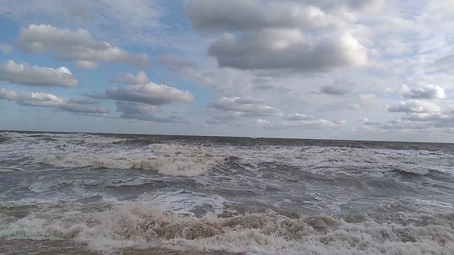 Бурлит море Азовское в шторм в станице Голубицкая