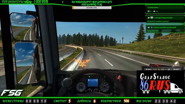 ================================================================================ ГОЛОСОВОЙ ДОНАТ:http://www.donationalerts.ru/r/grafsvarog123 QIWI : +79822189930 ================================================================================ Мой аккаунт в Steam : http://steamcommunity.com/profiles/76561198337478600 ================================================================================ Мой канал на Twitch : https://www.twitch.tv/grafsvarog123 Мой канал на goodgame.ru :https://goodgame.ru/channel/GrafSvarog123/ ================================================================================ Наша группа в ВК: https://vk.com/club146704996 Наш TeamSpeak 3 : 88.198.56.138:9989 ================================================================================ Каналы партнеров : Канал Олега : https://www.youtube.com/channel/UCQ-9aXIu4Z7PlWx00uKM8rg Канал Светланы : https://www.youtube.com/channel/UCNjSvRE_wlFRRkZzdR1vJXA Канал Вазгена : https://www.youtube.com/channel/UC-osuxSVWVgKhNjlO4HYTPA Канал Centurion Xlll : https://www.youtube.com/c/CenturionXlll Канал Fierce 178 RUS : https://www.youtube.com/channel/UCajf8gVUjE6CZMBP_8x6Hlw Канал SouthUral 74RUS : https://www.youtube.com/channel/UCNUCfKvWakBlw8yDwDWAzUQ Канал Nemo Mouse : https://www.youtube.com/channel/UCNEEm2eE2094bTrtRut7_vw Канал Slava178Rus : https://www.youtube.com/c/Slava178Rus Канал Иван Владимирович : https://www.youtube.com/channel/UCX42jyXSoOcLuSxPePX_hFg Канал Sergunya_rus : https://www.youtube.com/channel/UCeEirqFL078Q-ig90tqIC8A ================================================================================ Ссылки для скачивания модов : ссылка для скачивания модов ; http://truck-sim.club/ ссылка для скачивания модов 2 : https://stmods.ru/euro_truck_simulator_2/ ссылка для скачивания модов 3 : https://ets2.lt/en/page/3/ ссылка " Как установить карты " : https://www.youtube.com/watch?v=UF5f09i8wvE ================================================================================ ОБО МНЕ : Всем привет ! Зовут меня Максим, мне 35 лет, начинающий стример, стримлю для общения и собственного развлечения ! Играю в основном Euro Truck Simulator 2, SpinTires, World of Tanks. Если что не так пишите постараюсь исправиться. ================================================================================ МОЙ КОМПЬЮТЕР : Тип ЦП Intel Core i3-3240, 3400 MHz (34 x 100) Системная плата MSI H61M-P20/G3 Системная память 8160 МБ (DDR3-1600) Видеокарта AMD Radeon HD 7800 Series Наш партнер : https://truckersmp.ru/ https://vk.com/truckersmp2017 http://truckersmpradio.com/ Multistreaming with https://restream.io/