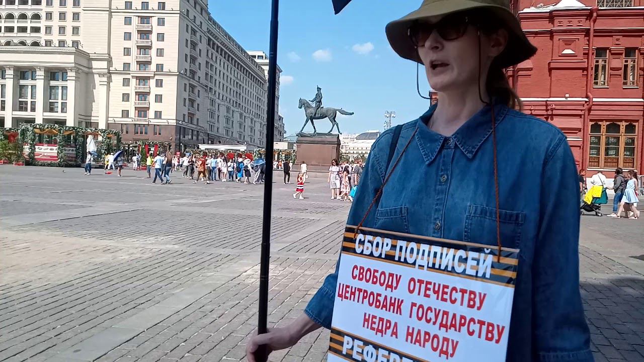 Москва. Пост № 1. Манежная Площадь. Одиночный информационный пикет участника Национально-Освободительного Движения (НОД). Ежедневно пикетчики Национально-Освободительного Движения рассказывают соотечественникам о правовой диверсии в нашей конституции о внешнем управлении государством и о идущем сборе решений (подписей) граждан с 1 марта за проведение всенародного референдума по изменению статей 9.2 ; 13.2 и 15.4 нашей конституции, что позволит вернуть нам суверенитет России, утерянный в 1991-93 гг.