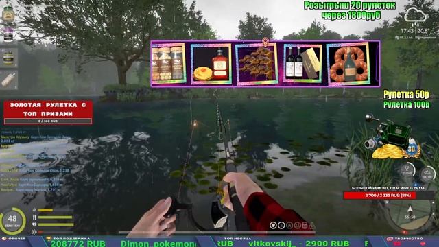 Поддержка донатом https://new.donatepay.ru/@1032463 Альтернативный донат https://www.donationalerts.com/r/kalyamba11 5536913964533059 карта Тинькоф Если стрим лагает,смотри стрим на трово https://trovo.live/s/Kalyamba_na_Ribalke Мой ВК - https://vk.com/kalyantv НИК в игре kalyan11 НАШ ДИСКОРД СЕРВЕР https://discord.gg/3ZeEDGs5h6 Заказ водоема на 1 час - 500р ( весь стрим 2500р ) Модерка на канале 1300р ( каждая следующая на 100р больше) ✅Призы в рулетке "ЗОЛОТАЯ" 500р ✔ ЗОЛОТО ✔ ПРЕМ ✔ КАТУШКИ РАПТОР 40, ВЕНГИ, ТАЙГА, СИЛЬВЕР 80, И другие ✔ ПАЛКИ ПИЛКЕРНАЯ, ДОНКА МОРСКИЕ, ✔ РОД ПОД, СТУЛЬЯ ✅Призы в рулетке СТАНДАРТ : 100р ✔ катушкИ РАПТОР 40, ВЕНГИ, ТАЙГА, СИЛЬВЕР 80, И другие ✔ катушки 60 для медного ( ЭВИИ, НАТОРЫ, ГОЛДА, и тд) ✔ ПИЛКЕРНОЕ УДИЛИЩЕ КОРОЛЕВА ОКЕАНА ✔ Морское Донное удилище ✔ прем ( 3, 7, 30 дней) ✔ золото ( 1, 3, 5, 10, 20 ,50) ✔ билет на море ( 1, 3, 5 дней) ✔ голд наживка и др. ✅Призы в рулетке "СТАРТОВАЯ" 50р ✔ катушка Венга ✔ катушка "silver80" ✔ катушка "БЕЛЫЙ КАЛИБР" ✔ катушка "Черный калибр" ✔ катушка "Протон" ✔ катушка "Нарга 6000" ✔ Набор Фидерист и спинингист ✔ Карповик Фортуна ✔ фидерные удилища ✔ прем, золото, алкашка, наживки и тд P.s Рулетка это не казино, а награда за поддержку стримера. Вечный ТОП ПОДДЕРЖКИ (10.06.2025) 1. Леха сварной 214 572 2. Dimon_pokemonchik 127 034 3. Skreb79 103 061 4. Interceptor 96 230 5. FishRus86 82 500