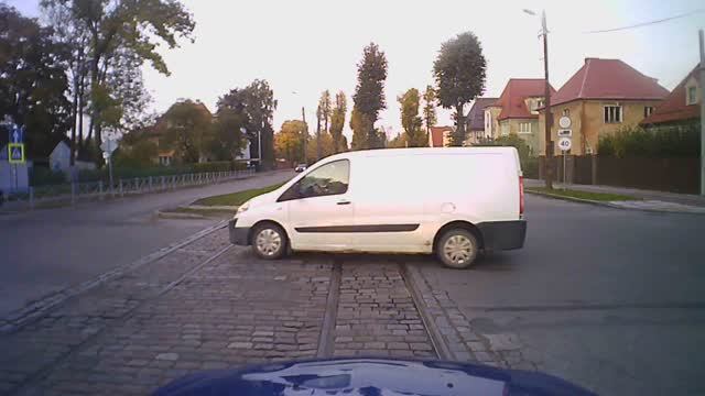 Разворот на нерегулируемом перекрёстке улицы Тельмана. Пл. Гофмана, трамвайные пути. Калининград.