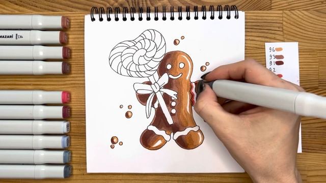 Рисунок скетч маркерами "Пряничный человек" для скетчбука | Срисовка картинки для начинающих