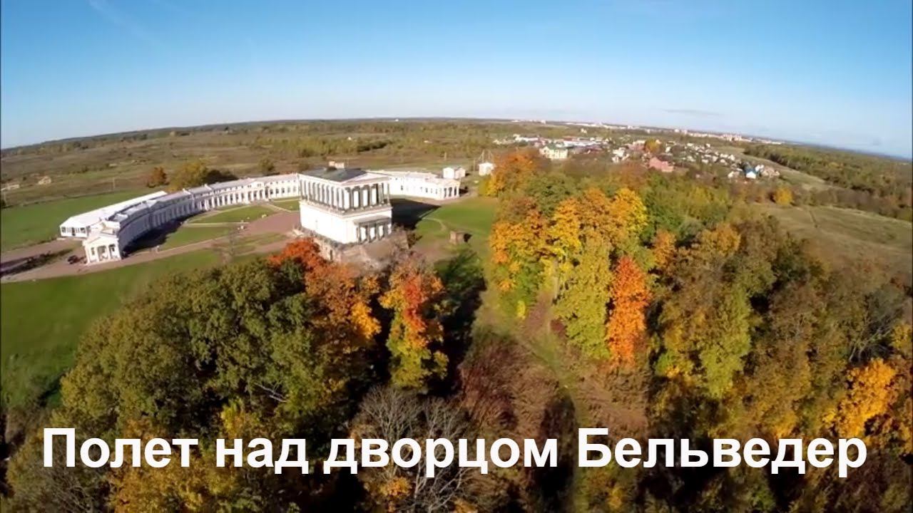 Полет над дворцом Бельведер Дворец Бельведер на Бабигонских высотах, Петергоф золотая осень. Съемка студии Археологического клуба Archeostudio
